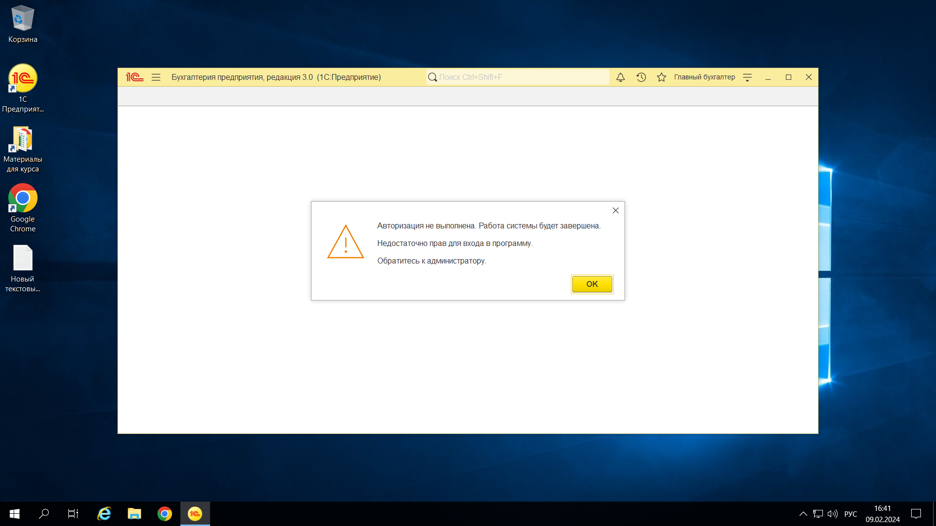 На рабочем столе есть 1С с базами для прохождения обучения и Ярлык на Материалы для курса (вся раздатка по курсу необходимая для работы с базами).