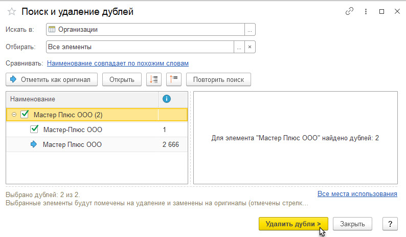 После загрузки сотрудников задвоилась организация. Что делать?