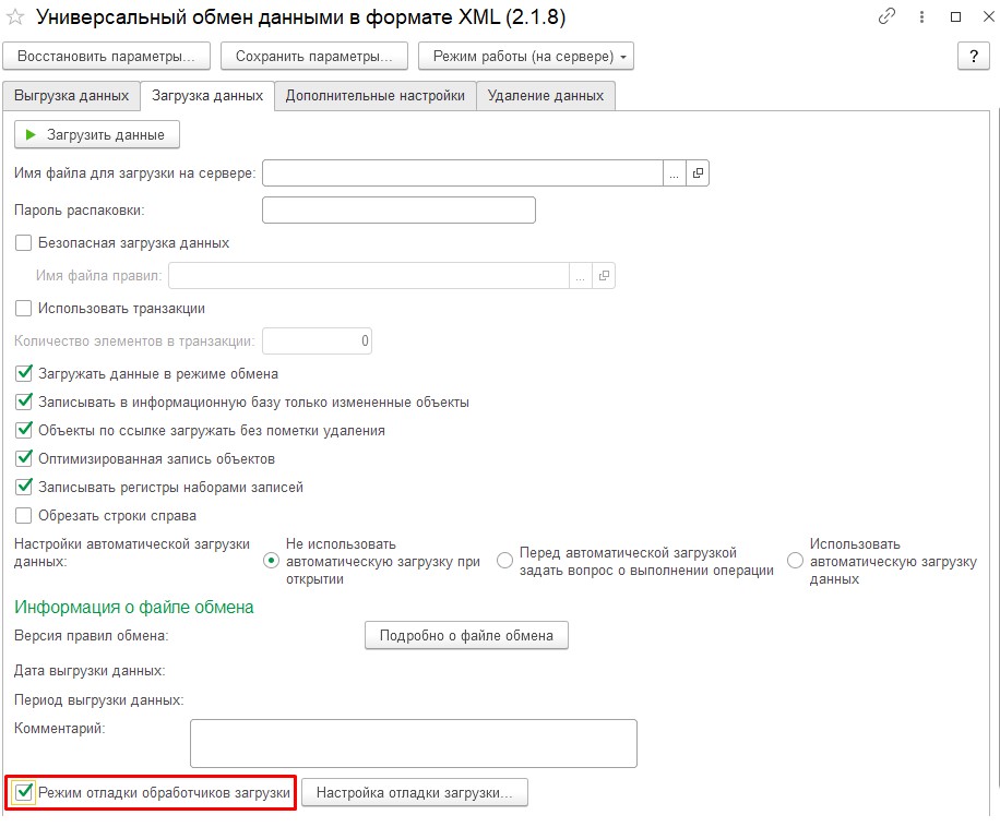 Почему при загрузке файла с помощью обработки “Универсальный обмен данными в формате XML” выдается ошибка “Не указан файл внешней обработки с подключаемыми процедурами обработчиков событий”?