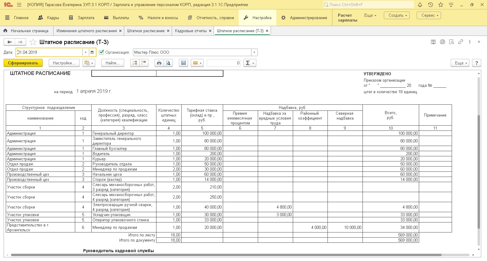 Модуль 7. Штатное расписание